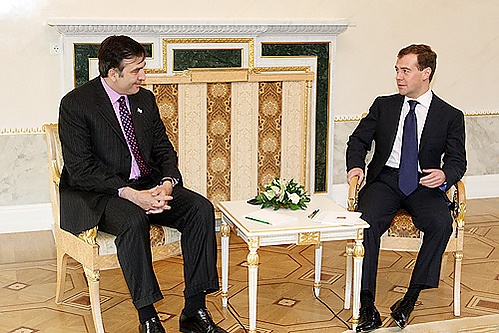 14 июня в Константиновском дворце Санкт-Петербурга состоялась полуторачасовая встреча Саакашвили с Владимиром Путиным. Саакашвили заявил, что настроен на мирный диалог в вопросе урегулирования конфликтов, прежде всего с участием России[14].