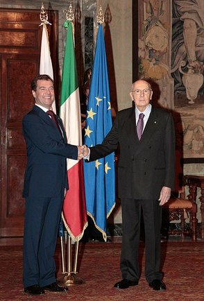 2010 год, когда Путин был премьер-министром России, а Дмитрий Медведев — президентом РФ, выдался богатым на встречи на высшем уровне между РФ и Италией. Таких встреч, включая межгосударственную консультацию в Сочи, было пять. Помимо диалога на высшем уровне, страны осуществляли интенсивные контакты между законодательными, исполнительными и судебными органами власти. Несмотря на отставку особо расположенного к России Сильвио Берлускони в ноябре 2011 года, до 2015 года встречи и взаимные визиты на высшем уровне в Риме и Москве проходили регулярно.