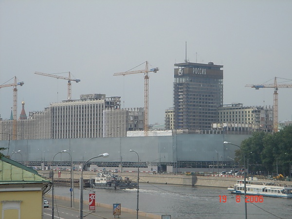 29 ноября 2004 года мэрия провела конкурс на снос гостиницы «Россия» и строительство нового комплекса. Концерн Bauholding Strabag AG и компания Dubai Investments были готовы инвестировать в проект 2 млрд долларов. Другой участник — компания «Монаб» (дочернее предприятие банка «Еврофинанс Моснарбанк») — предложила 1,45 млрд. Выиграла компания Шалвы Чигиринского «СТ Девелопмент» с предложением инвестировать 830 миллионов долларов. Представители «Монаб» не согласились с итогами конкурса и подали в суд на городскую администрацию. Иск оспаривал итоги конкурса, процесс формирования конкурсной комиссии и заключение контракта с «СТ Девелопмент». Некоторые из претензий компании были удовлетворены, однако ситуацию это не изменило[19]. С 1 января 2006 года гостиница «Россия» была закрыта, в марте начался демонтаж, к 1 сентября 2006 года здание было разобрано на четверть. Из-за близости Кремля и исторической застройки здание решили не подрывать, поэтому верхние пять этажей гостиницы разобрали при помощи башенных кранов. Стены строения, составленные из блоков и панелей весом более восьми тонн каждый, были разобраны и сплавлены на баржах по Москве-реке. Работы по демонтажу здания должны были завершиться в 2008 году, но окончились в 2010-м[19][20]. В 2008 году контракт с «СТ Девелопмент» всё же был расторгнут. За этим последовали судебные иски Шалвы Чигиринского к мэру Юрию Лужкову, в которых компания требовала вернуть 4 миллиарда рублей, потраченные на снос здания. Арбитражный суд отклонил иски. Работы над деконструкцией фундамента власти Москвы продолжили на собственные средства[21].