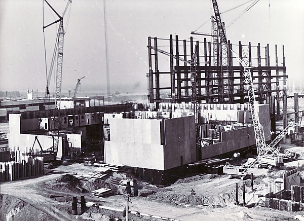 Официально строительство станции началось уже в ноябре 1979 года, после принятия постановления Совета Министров СССР о строительстве Ростовской АЭС. В первую очередь в период с 1979—1981 годы были построены: строительно-хозяйственная база АЭС, склады и временные объекты, пуско-резервная котельная, автомобильная и железная дороги, связывающие город Волгодонск и строительную площадку станции. Так же в этот период были начаты работы по отсыпке плотины пруда-охладителя[17]. В 1981 году началось строительство первого энергоблока станции, в 1983 году — второго энергоблока. По первоначальным планам окончание строительства и ввод первого энергоблока станции планировался на 1986—1987 год, последующие энергоблоки должны были вводиться за первым энергоблоком каждый год. Таким образом к 1990 году на Ростовской АЭС должны были быть построены и введены в эксплуатацию все планировавшиеся 4 энергоблока[14].