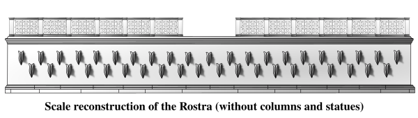 - Реконструкция внешнего вида древнеримской Ростры . Как видно, Ростра имеет мало общего с ростральными колоннами в Санкт-Петербурге.