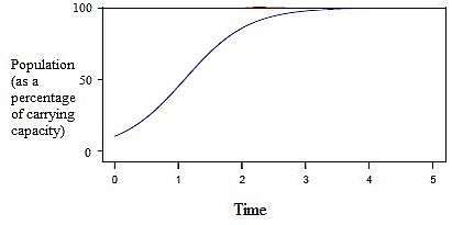 Большинство популяций не растёт экспоненциально, скорее они следуют логистической модели. Как только население достигнет своей предельной нагрузки, оно стабилизируется, и экспоненциальная кривая будет выравниваться в сторону ёмкости среды, что обычно происходит, когда население истощает большинство своих природных ресурсов.[10]