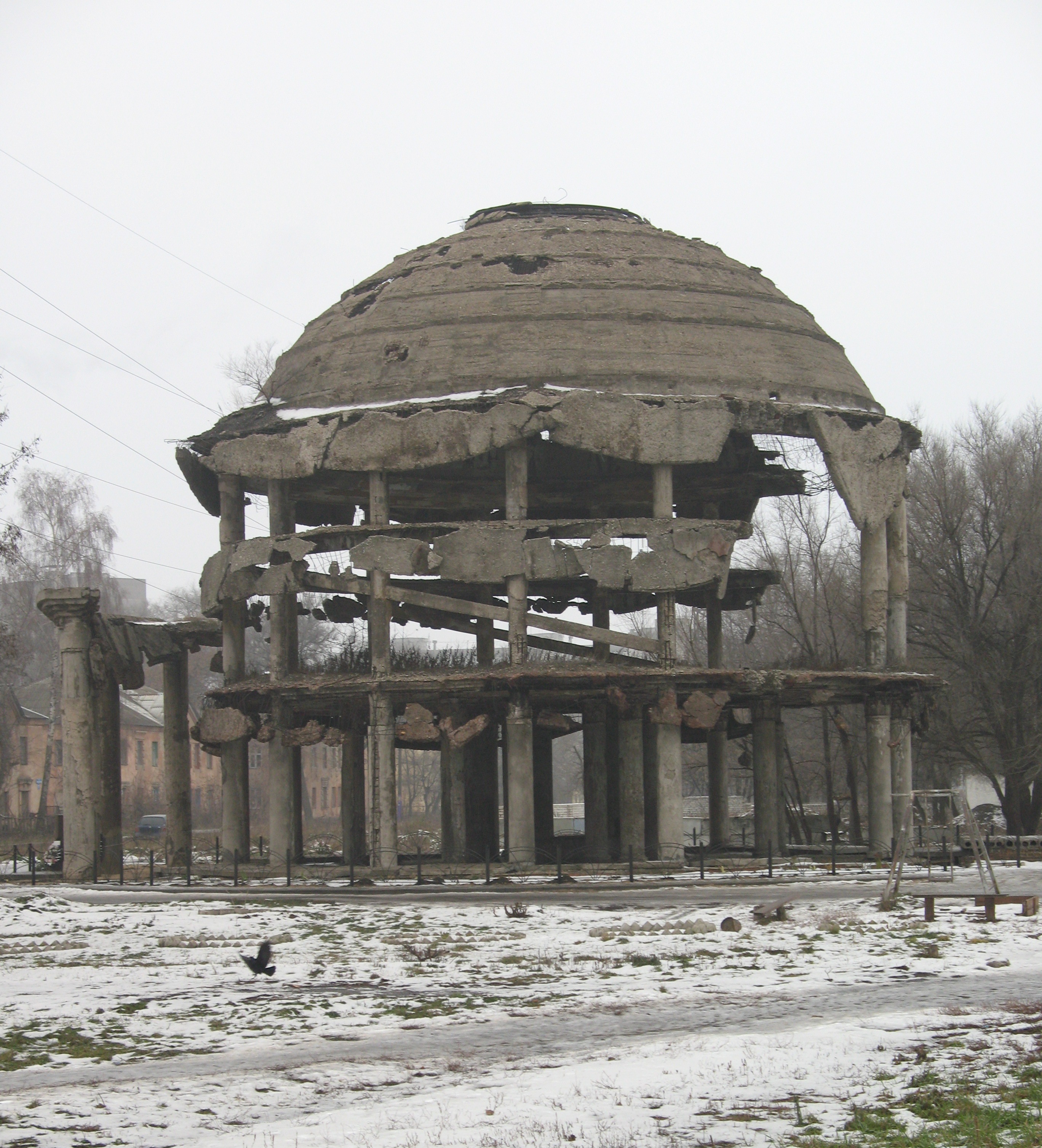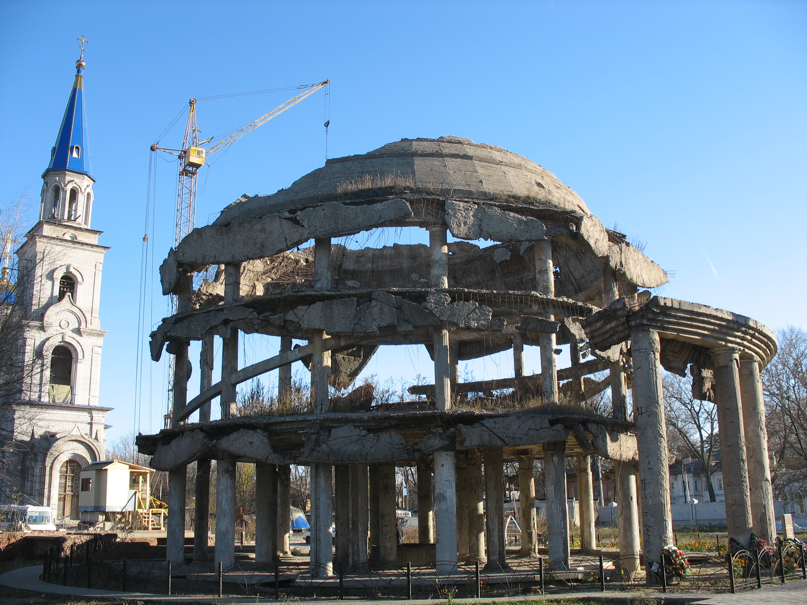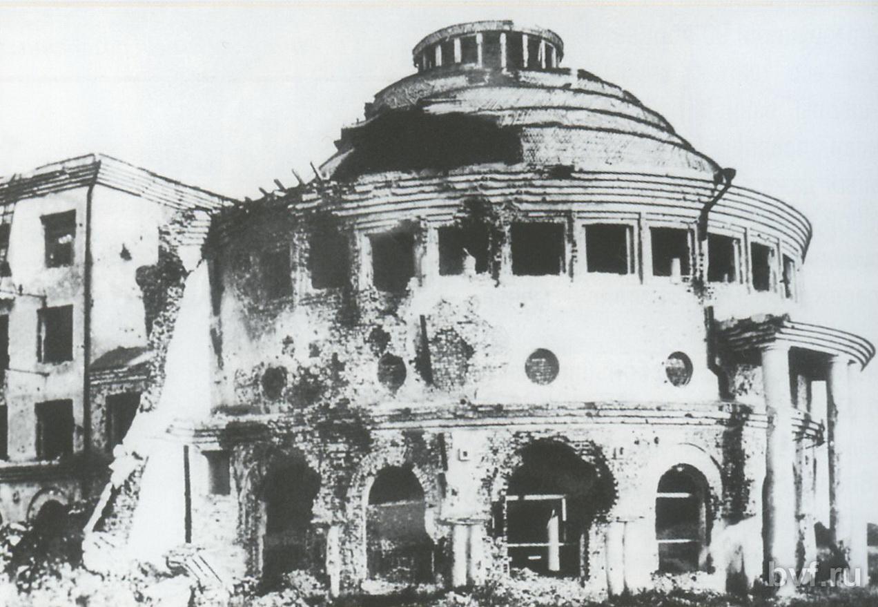 | Ротонда после освобождения Воронежа | Ротонда в 2008 году (почти с того же ракурса что и снимок слева) | Ротонда в 2007 году (до обрушения купола) |