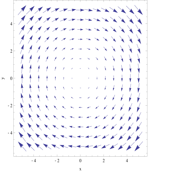Теперь рассмотрим несколько более сложное векторное поле[9]: