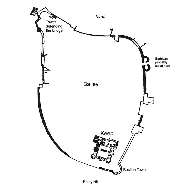 Рочестер был важным городом, построенном на месте старой римской крепости, находящейся на стыке реки Медуэй и дороги Уотлинг-стрит. Согласно книге Страшного суда, епископ Рочестера получил землю в деревне Эйлсфорд в графстве Кент, в качестве компенсации за землю, которая была выделена под Рочестерский замок. Из 48 замков, упомянутых в обзоре, земля этого была единственной из компенсируемых[2]. В замки подобных типов часто набирался гарнизон с большим количеством рыцарей. Деревянный замок Рочестера имел постоянное войско из 60 оплачиваемых рыцарей, что делало его особо важным укреплением[3].