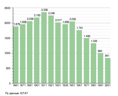 Население составляет 842 человека (2008 г.), плотность населения составляет 21 чел./км². Занимает площадь 40 км². Почтовый индекс — 98030. Телефонный код — 0942.