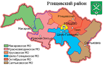 В Ртищевский муниципальный район входят 7 муниципальных образований, в том числе 1 городское поселение и 6 сельских поселений[18][19]: