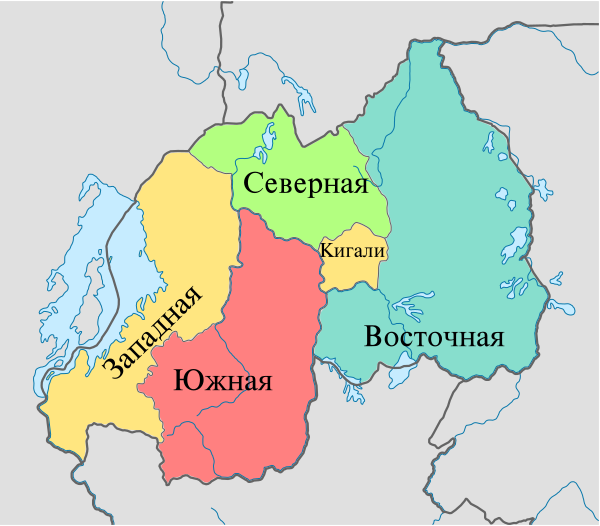 Руанда является унитарным государством[1]. С 1 января 2006 она подразделена на 5 провинций (руанда intara), которые делятся на 30 районов (дистриктов; руанда akarere)[197], делящихся на 416 секторов (руанда umurenge), состоящих из 2148 ячеек (руанда akagali), включающих в себя 14 837 отдельных населённых пунктов (руанда umudugudu) или их частей[198].
