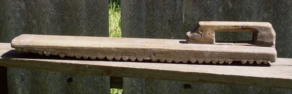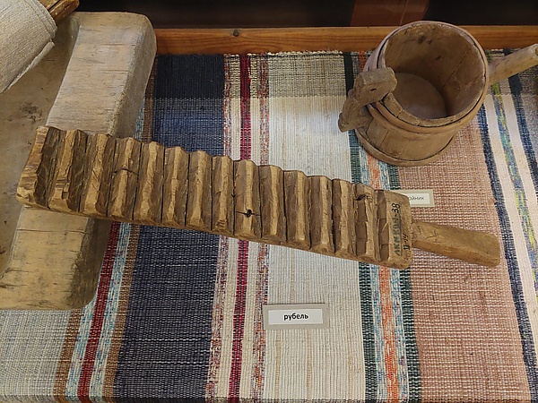 Иногда рукоятку рубеля делали полой и закладывали внутрь горошинки или другие мелкие предметы, чтобы они гремели при раскатывании.