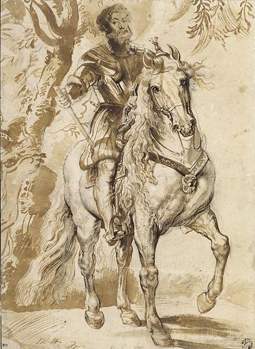 Хотя в Мадриде почти никто не верил в заявления Рубенса о художественной миссии, 8 месяцев своего второго пребывания в Испании он занимался почти исключительно живописью. По приказу короля для Рубенса оборудовали студию во дворце, и Филипп IV навещал его ежедневно, хотя общество фламандца явно привлекало монарха больше, чем его искусство. Тем не менее Рубенс написал портреты короля и его брата кардинала Фердинанда, королеву, инфанту Марию-Терезию и так далее[187]. За конный портрет короля Рубенс удостоился стихотворной похвалы от Лопе де Веги, назвавшего его «новым Тицианом»[188]. Королевским приказом для Рубенса были открыты все художественные коллекции, а гидом назначили придворного живописца Диего де Веласкеса. Рубенс воспользовался моментом, чтобы, как и в молодости, скопировать интересовавшие его работы Тициана — всего 32 картины. С Веласкесом они смогли найти общий язык и занимались верховой ездой. Описание жизни Рубенса в Испании оставил тесть Веласкеса — Пачеко[189].