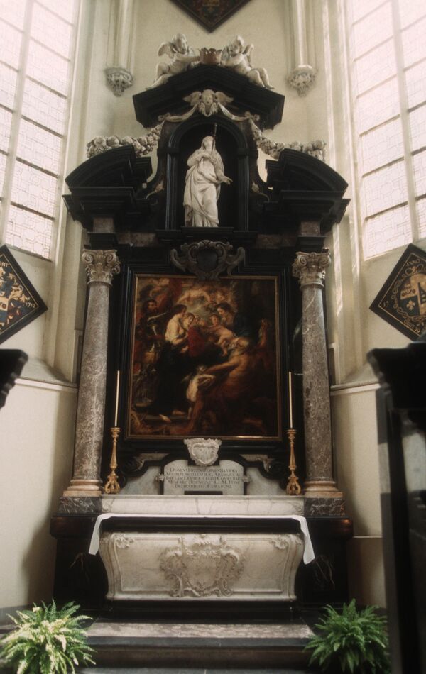 В первое десятилетие в Антверпене мастерская Рубенса работала преимущественно по заказам монашеских орденов, городских властей и типографии Плантена—Моретуса. В первые десять лет Рубенс создал около 200 полотен, преимущественно религиозного содержания, не считая немногих картин мифологического содержания и двух десятков портретов. Почти все эти произведения отличались крупными размерами, поскольку служили для украшения церквей, дворцов и муниципальных зданий. В 1609 году Рубенс и Ян Брейгель исполнили портрет эрцгерцогской четы, причём Брейгель писал пейзаж на заднем плане. Стиль Рубенса на первом официальном заказе проявился лишь в ярко-красной драпировке, отсекающей задний план и придающей глубину изображению. Обычны для него тщательная проработка кружев воротников, фактуры жемчуга, шёлкового носового платка и перчаток, зажатых в руке эрцгерцога. Картина была подписана обоими художниками[106]. В 1610 году Николас Рококс заказал для городской ратуши «Поклонение волхвов», причём уже в 1612 году картина была подарена Родриго Кальдерону, графу д’Олива. Однако новый этап в творчестве Рубенса оказался связан с заказом настоятеля церкви Св. Вальбурги, посредником при сделке выступил философ и коллекционер Корнелис ван дер Гест. Речь шла о «Воздвижении креста». Памятуя о неприятном римском опыте, Рубенс работал прямо в помещении церкви, что позволяло учитывать все особенности восприятия полотна[107].