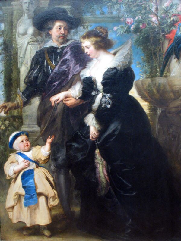 Рубенсу было 53 года, а его жене — 16, она была ровесницей его сына Альберта. По браку Елена приходилась родственницей Изабеллы Брандт: её сестра Клара Брандт была замужем за Даниэлем Фоурменом-младшим (1592—1648), братом Елены. Елена была десятым ребёнком в семье, и Рубенс впервые запечатлел её в 11-летнем возрасте для полотна «Воспитание Богородицы». Впрочем, с её старшей сестры Сусанны он исполнил 7 портретов — больше, чем с Изабеллы Брант[211]. В качестве свадебных подарков Елена получила от Рубенса пять золотых цепей, в том числе две с бриллиантами, три нитки жемчуга, бриллиантовое колье, такие же серьги, золотые и эмалевые пуговицы, кошелёк с золотыми монетами и множество дорогих нарядов[212].