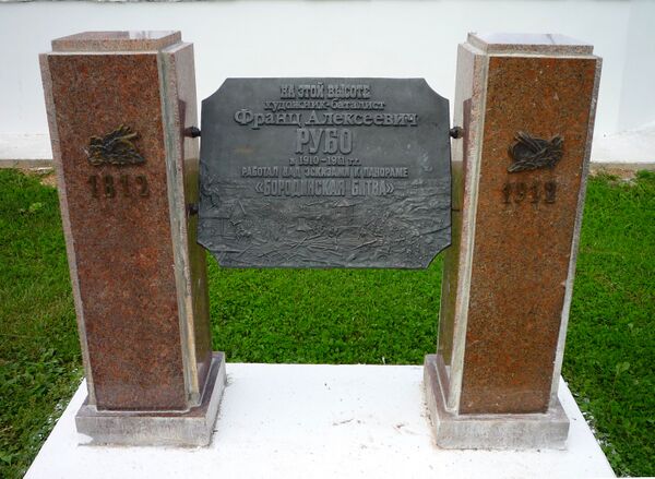 На Бородинском поле установлен памятный знак на высоте, откуда художник рисовал эскизы к своей знаменитой Бородинской панораме.