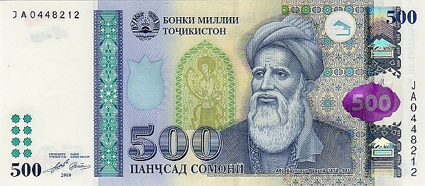 - Портрет Рудаки изображён на банкноте 500 сомони образца 2010 года