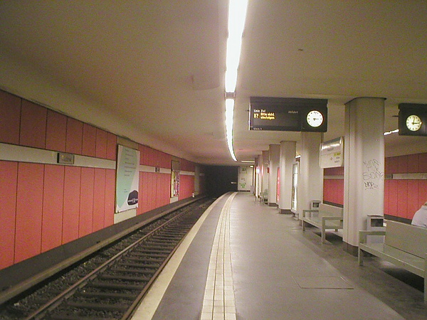 Двухпролётная колонная станция мелкого заложения. Архитектор — Райнер Г. Рюммлер. Сооружена по типовому проекту и оформлена аналогично станциям «Айзенахер Штрассе» и «Байеришер Плац». Путевые стены облицованы асбестно-цементными красными панелями, на высоте человеческого роста проходит серая полоса. Колонны облицованы алюминиевыми пластинами. Станция имеет два выхода, один из которых (в центре платформы) ведёт в одноэтажный наземный вестибюль. Непосредственно за станцией расположены оборотные тупики.