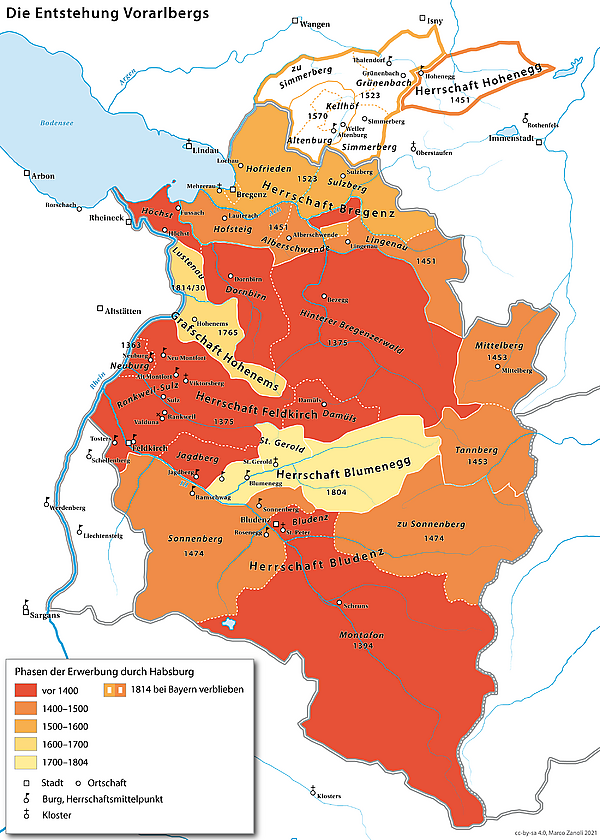 - Benedikt Bilgeri: Geschichte Vorarlbergs, Bd. 1: Vom freien Rätien zum Staat der Montforter, Wien/Köln/Graz 1971, S. 94–118.