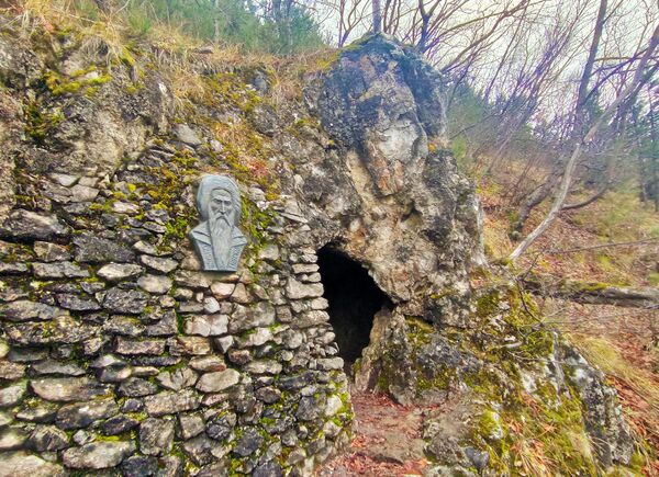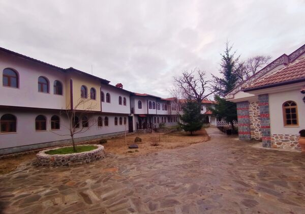 Над монастырем находится первый скит/пещера, в которой живет Иван Рильский в пустыне. В этих местах и происходит действие, описанное в житии святого. Над монастырем находится крест с видом на Рильский монастырь с невероятным панорамом на окрестности.[7] Красивый монастырь расположен среди буковых лесов и вековых деревьев очень редкого вида «медвежий орех».