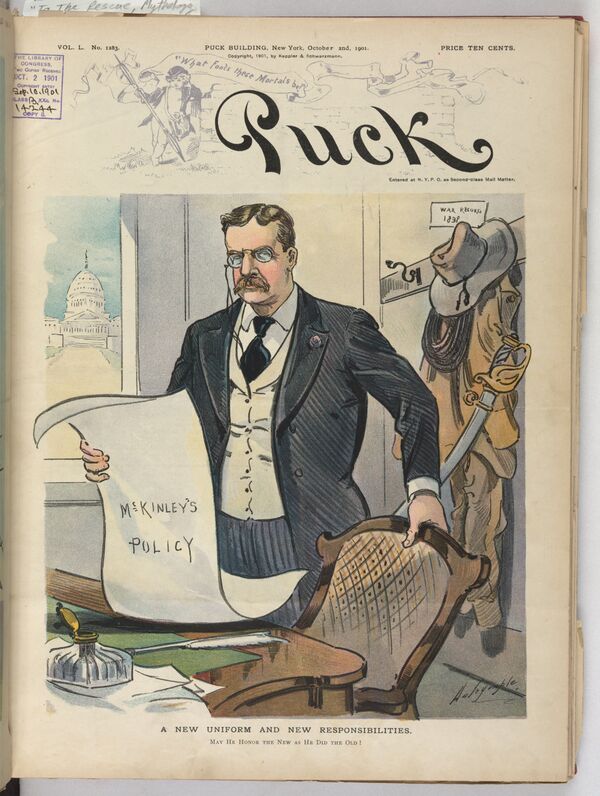 В 1900 году команда Мак-Кинли и Рузвельта одержала победу на президентских выборах. 4 марта 1901 года Мак-Кинли вступил в должность президента на второй срок, Рузвельт стал вице-президентом. 6 сентября того же года на Мак-Кинли было совершено покушение, а 14 сентября он скончался от полученной раны. В тот же день Рузвельт был приведен к присяге как новый президент. Он стал самым молодым (42 года и 10 месяцев) президентом за всю историю США.