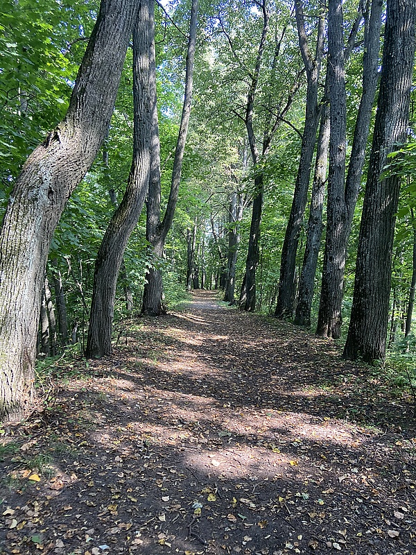 По валу проходит пешеходная дорожка, обсаженная деревьями.