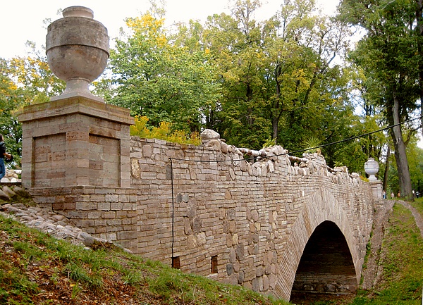 Мост был взорван в 1941—1944 годах, от него остался восточный устой и два постамента с вазами[1].
