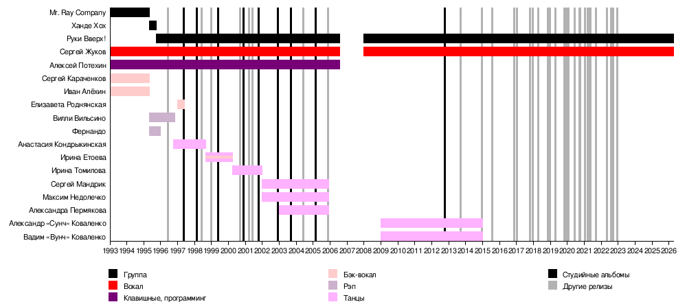 Но с 2008 года Сергей Жуков стал использовать название «Руки вверх!» для своего сольного творчества[17].