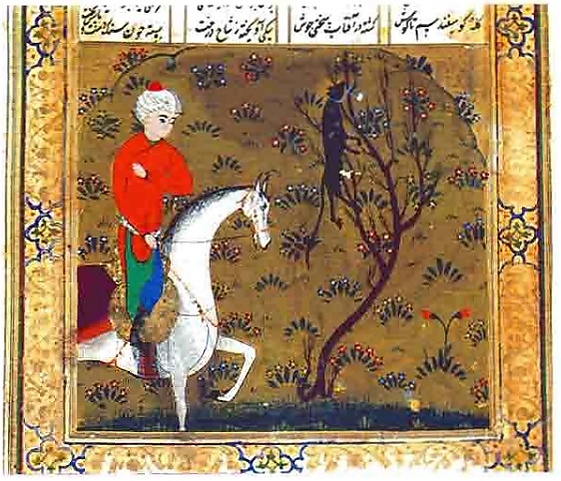 | Бахрам убивает дракона. Миниатюра тебризской школы к поэме «Семь красавиц». Стр. 136б | |||