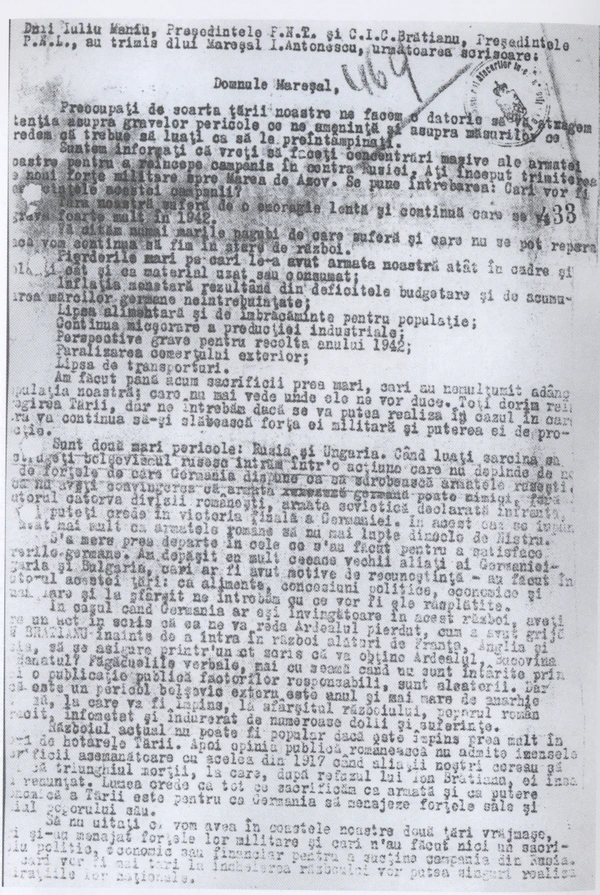 Мы несём жертвы, расходуя всю продукцию и весь наш импорт военного характера на содержание наших действующих частей, а также оккупационных и охраняющих побережье […] Говорят ли вам всегда правду относительно вклада Румынии в войну: что эта война стоит Румынии 300 000 000 000 лей; что за этот период мы дали Германии более 8 000 000 тонн нефти, угрожая своим национальным запасам и самим залежам…