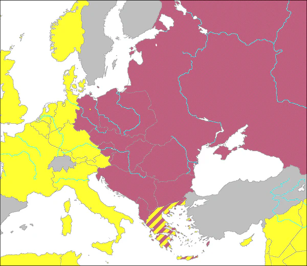 - 50 % — под оккупацией других стран антигитлеровской коалиции;