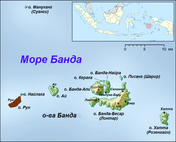 Изобилие мускатного ореха привлекло к островам Банда повышенное внимание европейцев — именно эти острова, наряду с другими Молукками, стали первой территорией Малайского архипелага, подвергшейся колониальному освоению. К началу XVII века Банда стали предметом ожесточённого соперничества Нидерландов и Великобритании: обе державы создали ост-индские компании, наделённые монопольным правом на коммерческую деятельность в Азии и имевшие в своём распоряжении значительные военно-морские силы и сухопутные войска. Первыми в контакт с населением Руна вступили англичане: в 1603 году здесь ненадолго высадились десять человек из состава первой экспедиции, направленной в регион Британской Ост-Индской компанией (БОИК) во главе с колониальным деятелем и капером Джеймсом Ланкастером. В 1607 году на острове побывала третья ост-индская экспедиция БОИК под руководством известного мореплавателя Уильяма Килинга[15].