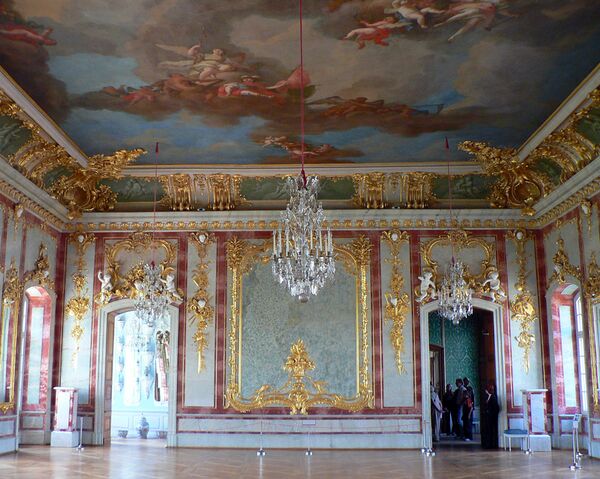 Заказчик впервые приехал в Руэнталь на жительство в апреле 1767 года, находился во дворце до декабря, а затем прибыл со своим двором и в 1768 году, когда дворец был официально открыт, хотя некоторые отделочные работы проводились до 1770 года, когда помощник И. М. Граффа вставил зеркала в Белом зале.