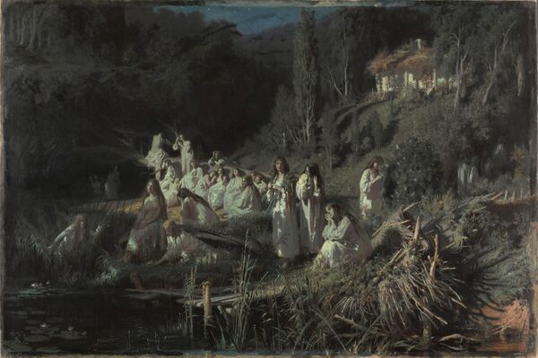 У восточных славян (а также у саамов) было распространено поверье, что водяные красавицы-русалки по ночам выходят из воды, садятся на траву и расчёсывают свои волосы[22]. Это поверье часто использовали в качестве мотива художники и поэты — например, Шевченко в стихотворении «Утоплена».
