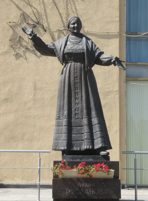 - 3 апреля 2018 года в Саратове установлен бронзовый монумент, изображающий певицу в традиционном русском костюме[87], скульптор Андрей Щербаков. Памятник установлен перед фасадом Центра народного творчества имени Руслановой Л. А. на улице Ломоносова 20, Саратов.