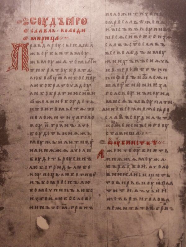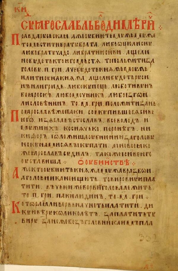 | Сѹдъ ꙗрославль володимирица . правда рѹсьскаꙗ[1] (А сє єсть правда рускаа[2]) | |