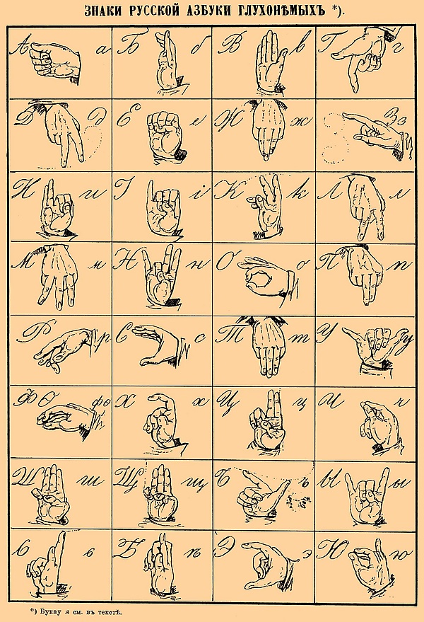 Русская жестовая азбука известна по крайней мере с первой половины XIX века[2][3].