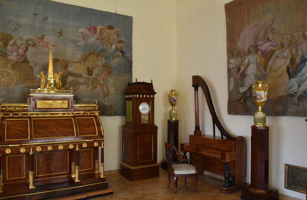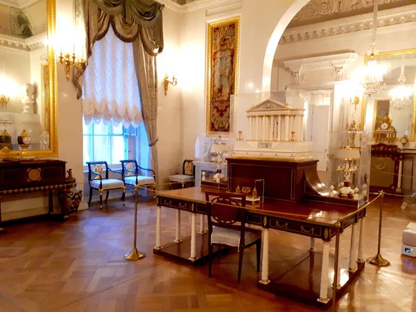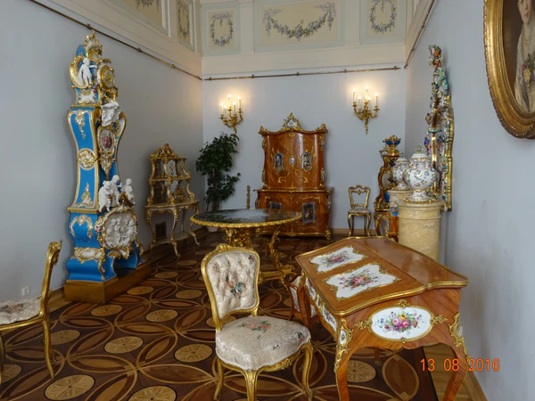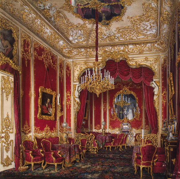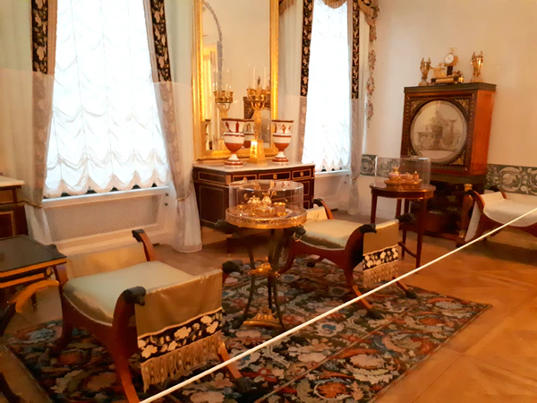 Позднее императрица Екатерина II, вспоминая время, когда она была ещё великой княгиней, жаловалась в своих записках на недостаток мебели: «Двор в то время был так бедно меблирован, что зеркала, стулья, столы и комоды перевозились из Зимнего дворца в летний, оттуда в Петергоф и даже ездили с ними в Москву. По дороге всё билось: ломалось… Приходилось сидеть на качающихся стульях, за столами на трёх ножках. И я решила мало-помалу покупать себе комоды, столы на собственные деньги»[6].