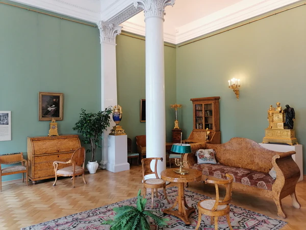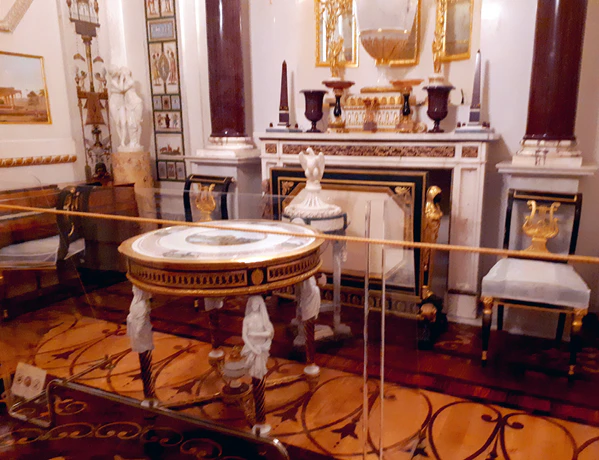 Для интерьеров дворца в Павловске — усадьбы великокняжеской четы: Павла Петровича (будущего императора Павла I) и Марии Фёдоровны — мебель изготавливали русские мастера по рисункам швейцарского художника Анри-Франсуа-Габриэля Виолье, исполнявшего обязанности «инспектора кабинетов картин и эстампов». Виолье приехал в Россию из Вюртемберга, области на юго-западе Германии — родины Марии Фёдоровны, урождённой принцессы Вюртембергской. Мебель, спроектированная Виолье, близка французскому стилю Людовика XVI[8][9].