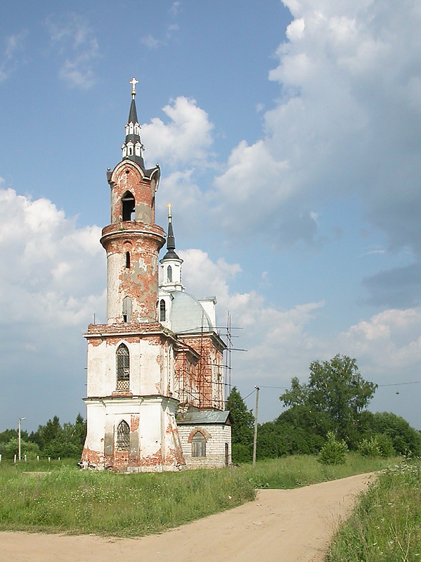 После того, как императрица забраковала баженовский проект, строительные работы в Царицыно продолжил в 1787—1793 годах М. Ф. Казаков. В 1796 году, заняв престол, император Павел I распорядился прекратить все работы, и дворцы остались недостроенными. Казаков также является автором «Петровского подъездного дворца». Его ученикам Родиону Казакову и Алексею Бакареву[6][7] — принадлежат ранние попытки наложения готического декора на традиционную для православия форму крестово-купольного храма — соборный храм Зачатьевского монастыря и Ново-Никольский собор в Можайске. В конце 1780-х годов мода на готические мотивы проникает всё дальше в глубинку, на что указывают их неожиданные интерпретации в усадьбах Рязанской губернии — Красном, Баловневе и Вешаловке.