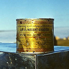 Следующими посетителями этого склада Толля стали советские полярники, отыскавшие его спустя 73 года. В 1973 году в ходе научно-спортивной экспедиции «Комсомольской правды» под руководством Д. Шпаро отрядом Ю. И. Хмелёвского на мысе Депо (75°53′ с. ш. 92°56′ в. д.GЯO) в западной части полуострова Заря был найден этот исторический склад. В следующем году к месту находки была послана совместная научно-исследовательская экспедиция Минпищепрома СССР, Госрезерва СССР и «Комсомольской правды». Члены экспедиции привезли на исследование в Москву кубический жестяной ящик, поднятый из вечной мерзлоты, в котором оказалось 6 кг овсяной крупы. Проведённые исследования показали, что, несмотря на возраст в 74 года, крупа отлично сохранилась. К находке на Таймыре проявили большой интерес пищевики и специалисты по длительному хранению продуктов. Частично продукты, изготовленные в 1900 году, были вывезены со склада экспедиции Толля, частично оставлены для дальнейшего хранения до 1980, 2000 и 2050 годов, продолжая эксперимент невольно начатый Толлем. Дополнительно к продуктам конца XIX века на глубину 1,5 метра были заложены образцы продуктов, изготовленных в 1974 году в СССР. И в дальнейшем, в ходе нескольких дальнейших экспедиций, продолжались операции по частичному изъятию исторических продуктов для последующего изучения и добавлению к ним современных[51][52].