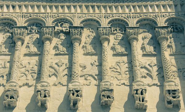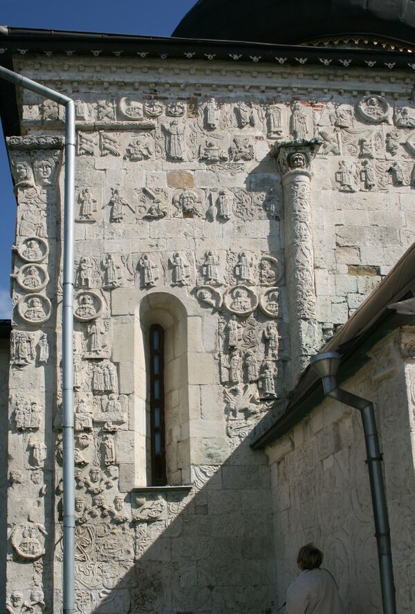 О «богатстве народной фантазии и тонком понимании красоты пластики в её синтезе с архитектурой свидетельствуют монументально-декоративные рельефы Владимиро-Суздальской земли, которые по богатству тематики и разнообразию композиционных мотивов не имели себе равных». Это проявляется в убранстве следующих храмов — Успенский собор (Владимир, Россия), Дмитриевский собор (Владимир), церковь Покрова на Нерли. Религиозные темы в их украшении перемежаются со светскими, современные мотивы с языческими, а профессиональная декоративная скульптура с народной резьбой. Также заслужено знамениты рельефы следующих церквей — Суздальский собор, Георгиевский собор (Юрьев-Польский). Стены храма в Юрьеве-Польском вообще покрывает целиком тончайший «ковер» резьбы, создавая ощущение праздничности и пышности[3].