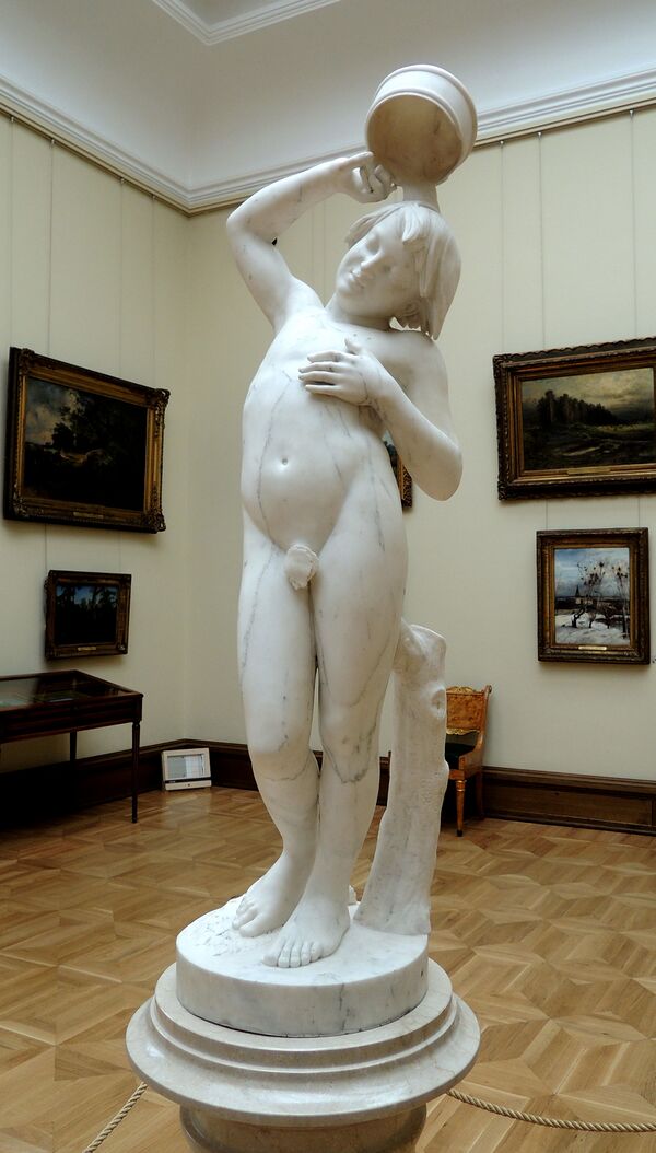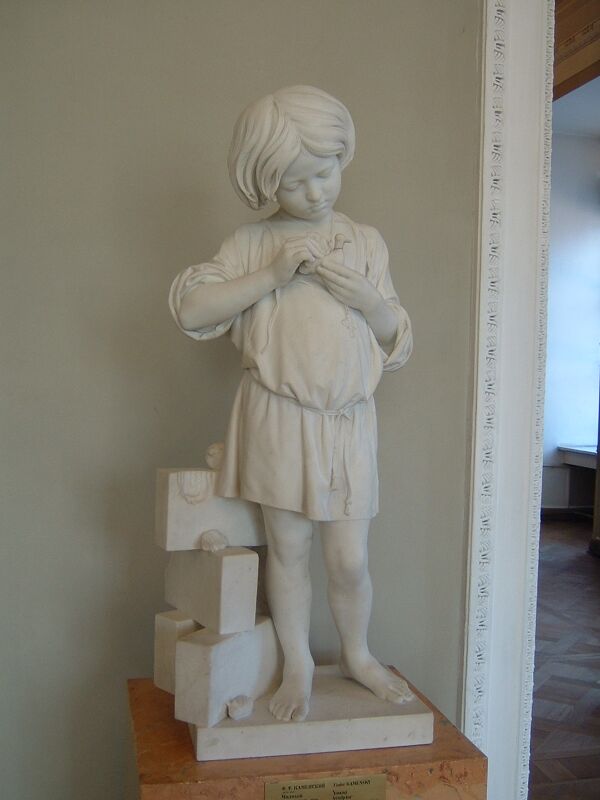 Фёдор Каменский также занимает видное место в пластике 1860-х годов. В его работах «сильно прозвучали новые жанровые мотивы»[3]. В своих темах он опирался на повседневность, быт, поэтому обыденность его сюжетов была так близка зрителю и вызывала симпатию. Его «Мальчик-скульптор» — небольшая статуя, изображающая крестьянского мальчика, занятого лепкой. По своему характеру она примыкает к более ранней статуе «Мальчик в бане» Сергея Иванова.