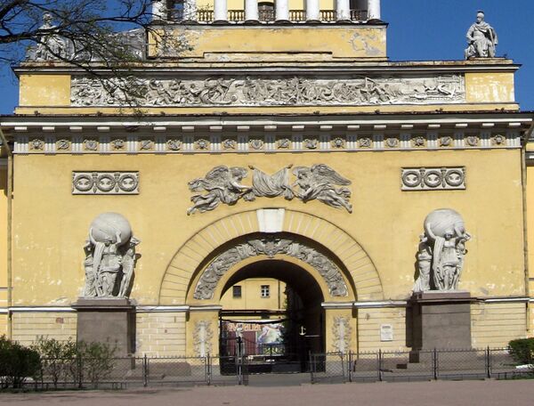 Таково, например, здание Адмиралтейства (1823), которое невозможно представить без декоративного убранства. По словам его автора архитектора Захарова, без скульптуры оно теряет пропорции и красоту. Пластика Адмиралтейства стала классическим примером синтеза искусств. Над ней трудились лучшие мастера — Феодосий Щедрин, Василий Демут-Малиновский, Степан Пименов, Иван Теребенёв. При создании здания архитектор подробно разработал систему убранства, определив для каждого скульптора участок работ, общий силуэт и масштабность декоративных элементов. Эта общая схема послужила руководством для скульпторов самого разного дарования и мастерства, которым удалось выразить общий замысел Захарова, сохранив своеобразие в частном. Важную роль в общем композиционном замысле играют «Морские нимфы» работы Щедрина — это наиболее яркое и зрелое произведение скульптора. По четырём углам аттика стоят фигуры Ахилла, Пирра, Аякса и Александра Македонского, скульптуры по наверху башни а также по углам четырёх фронтонов — аллегории 12 месяцев (скульпторы Щедрин, Демут-Малиновский и Пименов). Над «Нимфами» установлен знаменитый горельеф Теребенева «Возрождение флота в России». Им же выполнены рельефы для фронтонов портиков с изображением летящих Слав. «Успех этой грандиозной коллективной работы во многом объясняется тем, что вся скульптура была создана по единому плану зодчего и пронизана единым содержанием. В аллегорических композициях художники передали идею мощи России как великой морской державы, владычицы морей. Была найдена самобытная монументальная форма, которая придала сооружению неповторимую декоративную красоту»[3].