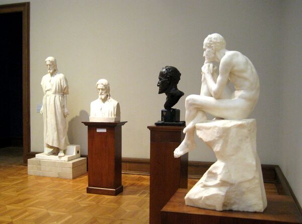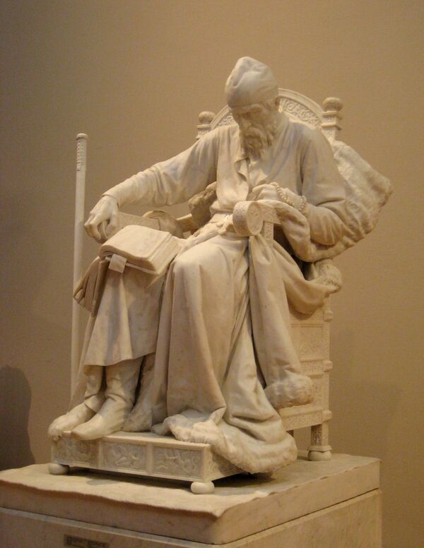Марк Антокольский — крупнейший мастер русской реалистической скульптуры 2-й пол. XIX века. Известность ему принесла уже первая работа — «Иван Грозный». «Ярко выраженный психологизм образа отличал его от многих произведений пластики того времени»[3]. За ним последовал «Пётр I». «Способность к раскрытию внутреннего содержания образа, умение показать сложную работу мысли высоко ценились передвижниками, и именно это обеспечило Антокольскому видное место в их рядах»[3]. Он создаёт скульптуры «Христос перед народом», «Умирающий Сократ», «Иоанн Креститель» и «Спиноза». Эти работы не равноценны, в них меньше внутренней силы и целеустремлённости по сравнению с первыми работами, зато больше интереса к выражению «вечных» нравственных общечеловеческих идей. Это даже вызвало тревогу у критика Стасова, который увидел в этом отход от реализма[3].