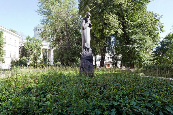 Матвей Манизер создал более 40 памятников, в основном — изображения современников. Он — представитель академического направления в советской скульптуре; его манера сочетает приёмы повествования на основе точного воспроизведения натуры с достаточной эмоциональностью образов. В числе произведений — памятник Тарасу Шевченко в Харькове[17].