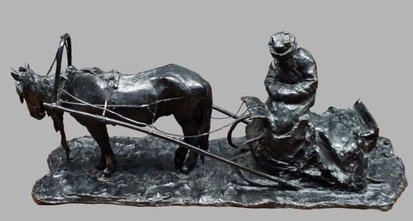 Наиболее «передвижнической» по настроению в скульптуре 2-й пол. века была группа «Крестьянин в беде» (1873) Матвея Чижова. Она приобрела большую популярность и неоднократно повторялась. «В этой работе уже нет и в помине влияния классицизма, которое еще так сильно давало себя знать в предшествующие десятилетия. Реальная жизнь, конкретная модель являются здесь ведущими и именно они определяют силу образа»[3].