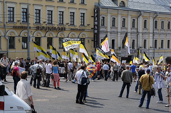 Ежегодно 4 ноября (праздник День народного единства в России) проходит «Русский марш» — шествия и митинги русских националистических организаций и движений в городах России и других стран постсоветского пространства. Первый «Русский марш» прошёл в 2005 году, через год после учреждения в России Дня народного единства, и стал первой крупной разрешённой демонстрацией русских националистов в современной России[51]. Основными организаторами были националистическое объединение Движение против нелегальной иммиграции (ДПНИ) Александра Белова (Поткина) и Владимира Басманова и неонацистская общественно-политическая организация «Славянский союз» (СС) Дмитрия Дёмушкина, с 2011 года — националистическая организация «Русские» Басманова, Белова, Дёмушкина и др. Националисты фактически «монополизировали» День народного единства[52][53]. Мероприятие является основой для создания широкой коалиции праворадикальных сил[54] и для дальнейшей протопартийной деятельности националистов, начатой ДПНИ в 2005—2006 годах[55], для которого первый «Русский марш» стал первым крупным политическим достижением[54]. «Русский марш» является одним из немногих подобных событий, повторяющихся ежегодно и позволяющих изучить взаимодействие националистических активистов и государственных властей[52]. В апреле 2008 года оргкомитет «Русского марша» выпустил заявление, в котором «власти РФ всех уровней» были объявлены «структурой абсолютно антинациональной, пришедшей и удерживающей власть сфальсифицированными выборами, карательными службами и обманом коренного населения России»[56][57]. В 2005—2011 годах «Русский марш» был самой массовой уличной манифестацией в России[58]. «Русский марш» представляет интерес с точки зрения развития политического ритуала в постсоветской России. Это одно из немногих подобных событий, повторяющихся ежегодно и позволяющих изучить взаимодействие националистических активистов и государственных властей[52].