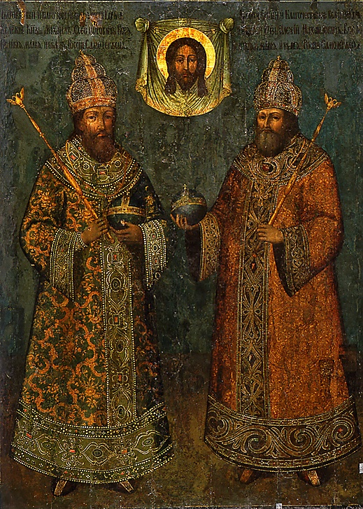 В 1677 г. Фёдор Евтихиев Зубов создает парный надгробный портрет в рост царей Михаила Федоровича и Алексея Михайлович (изначальная живопись почти не сохранилась под слоями живописи). Богдан Салтанов пишет групповой портрет в иконе «Кийский крест». Пытается развиваться и другой тип надгробного портрета — портрет «во успении».
