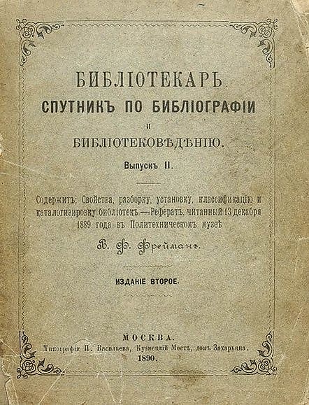 - Томачинский В. Н. Начала библиотековедения. М.: Тип. Т-ва И.Д. Сытина, 1895. 18 с.