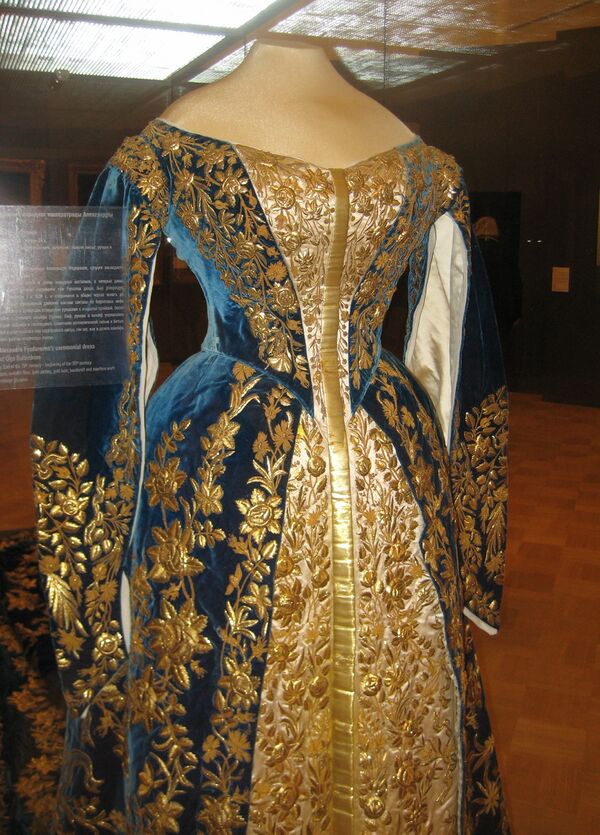 Первые попытки официальной регламентации дамского придворного платья относятся к концу XVIII века, то есть периоду правления Павла I. В «Объявлении экспедиции церемониальных дел», дамам во время коронационных торжеств предписывалось надевать робы (то есть пышные платья на фижмах доампирных фасонов, вышедшие из моды после Великой Французской революции) из чёрного бархата со шлейфом из того же материала[1]. Графиня Варвара Николаевна Головина, фрейлина двора, пишет, что во время коронации Павла I в 1797 году «все были в полном параде: в первый раз появились придворные платья».[2] К XVIII веку относятся и первые упоминания при дворе так называемого «русского платья», под которым, по всей видимости, понимался наряд, заимствовавший крой и некоторые черты от русского народного костюма и имевший вид сарафана. Русские платья подарил император Александр I прусским дамам, прибывшим в Санкт-Петербург на обручение великой княжны Екатерины Павловны с принцем Ольденбургским в 1809 году.