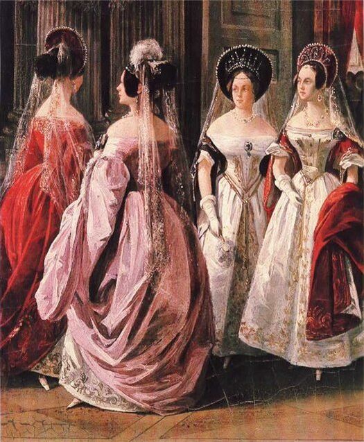 Такой регламент женского придворного платья действовал весь период правления Николая I. Известно, что малейшие отклонения от образца вызывали у него гнев. Для несовершеннолетних великих княжон Николай считал взрослое официальное платье слишком нескромным; девочки не должны были носить шлейф, декольте и слишком много украшений.