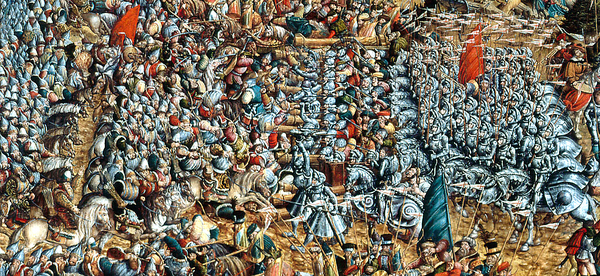 В 1512 г. Василий вновь начал войну с Литвой; в 1514 г., при содействии Глинского, взял Смоленск, но в том же году московские полки были разбиты князем Острожским при Орше. В 1512, 1517 и 1521 гг. крымские татары, находившиеся в союзных отношениях с королём Сигизмундом, совершали набеги на Московское княжество. В разорительном набеге 1521 года, предпринятом ханом Мехмедом I Гиреем, участвовал и литовский отряд под началом Е. Дашковича; современники оценивали число пленных, выведенных из Московского государства, в 800 тысяч человек[13]. В 1522 г. война закончилась перемирием, по которому Смоленск остался за Москвой и граница с Литвой была установлена по Днепру и далее по рекам Иваке и Мере.